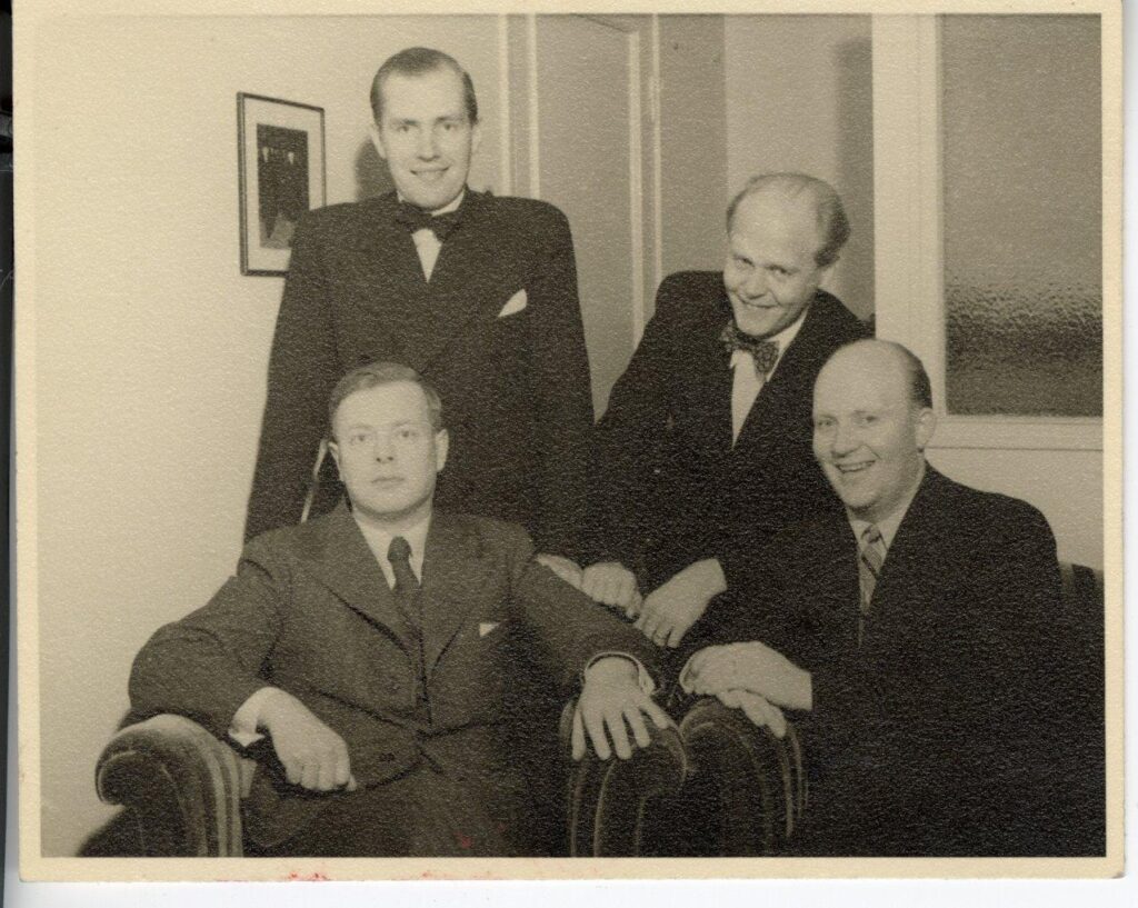 3. valokuva: Einari Marvia, Jouko Tolonen, Taneli Kuusisto ja Ahti Sonninen, vuonna 1948, Sibelius-museon arkisto