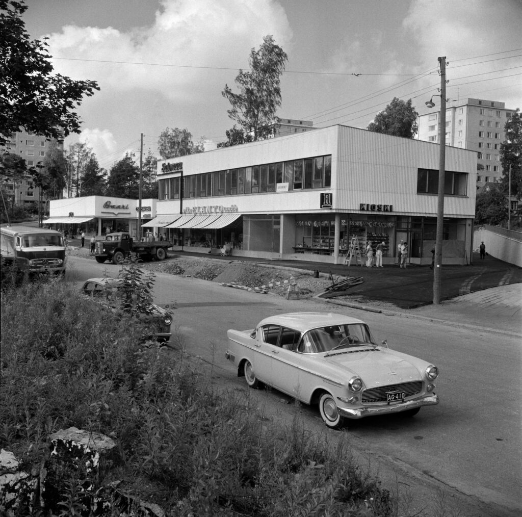 3. valokuva: Herttoniemen ostoskeskus, Hiihtäjäntie n. 1960, valokuvaaja: Kienanen Niilo (Helsingin kaupunginmuseo)